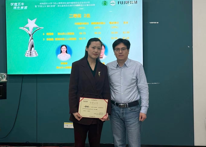 3月21日,由中国医药教育协会联合皖南医科大学弋矶山医院共同主办的“学富五车 镜在掌握”安徽省消化内镜专业技能大赛在芜湖落幕。黄山市人民医院消化内科副主任医师蒋雪婷凭借扎实的专业素养、娴熟的操作功底和清晰的病例阐述,从全省众多优秀参赛选手中脱颖而出,摘得大赛二等奖。