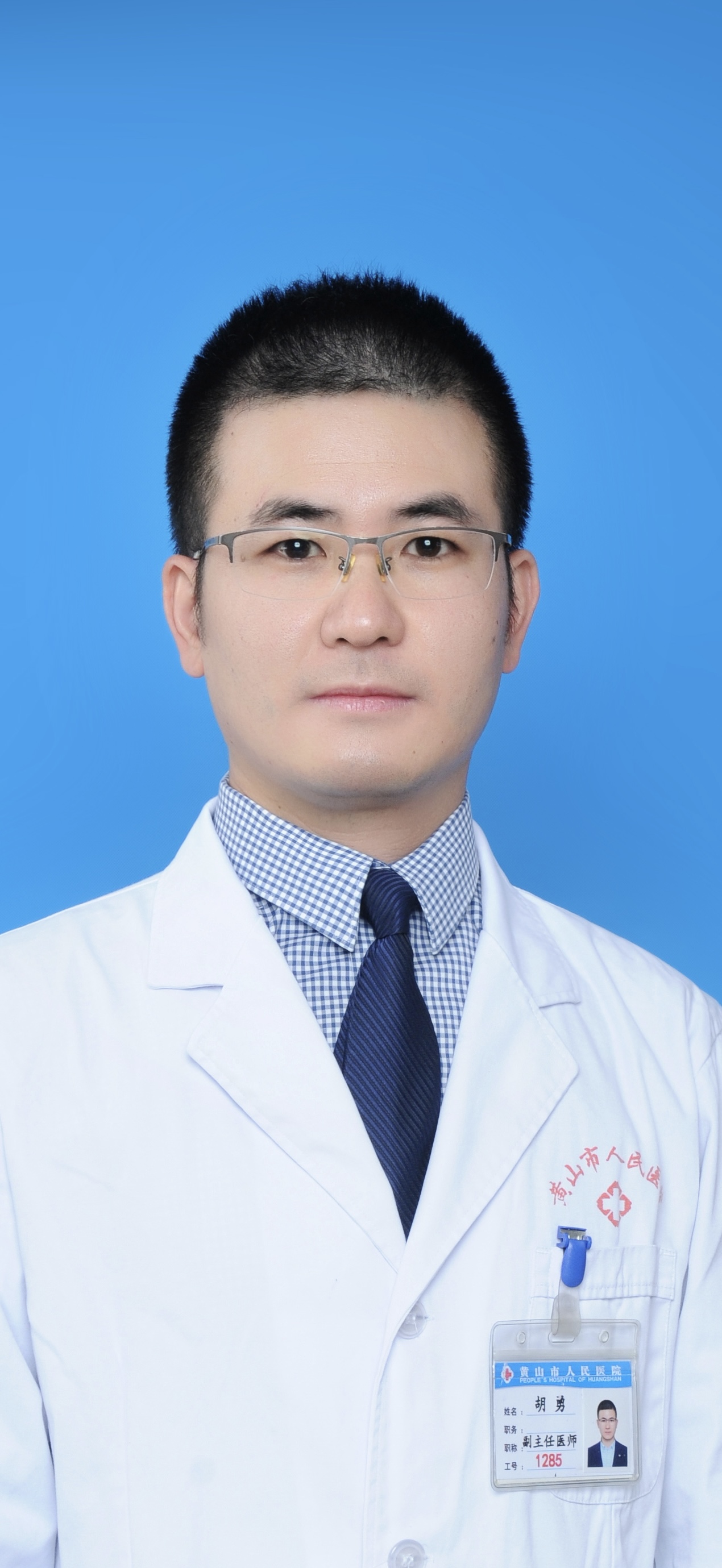 胡勇,中国共产党员,副主任医师,安徽省医师协会微无创学会委员,安徽省抗癌协会青年理事会常务理事,安徽省医师协会疝与腹壁外科学组委员,安徽省病案质量控制专家库成员,黄山市人民医院住培基地核心师资成员,从事普外科临床工作18 年,精通普外科常见疾病诊治,先后在浙江大学医学院附属第二医院和复旦大学附属肿瘤医院进修,擅长甲状腺,乳腺及各类疝的常规手术和微创手术治疗,常规开展经锁骨下入路腔镜下甲状腺癌根治术、经胸乳入路腔镜下甲状腺癌根治术、腔镜下甲状旁腺切除术、甲状旁腺移植术、各种乳腺癌根治术、乳腺癌保乳根治术、腹腔镜下疝无张力修补术等,发表核心论文多篇,多次荣获“优秀员工”和“优秀带教老师”称号。