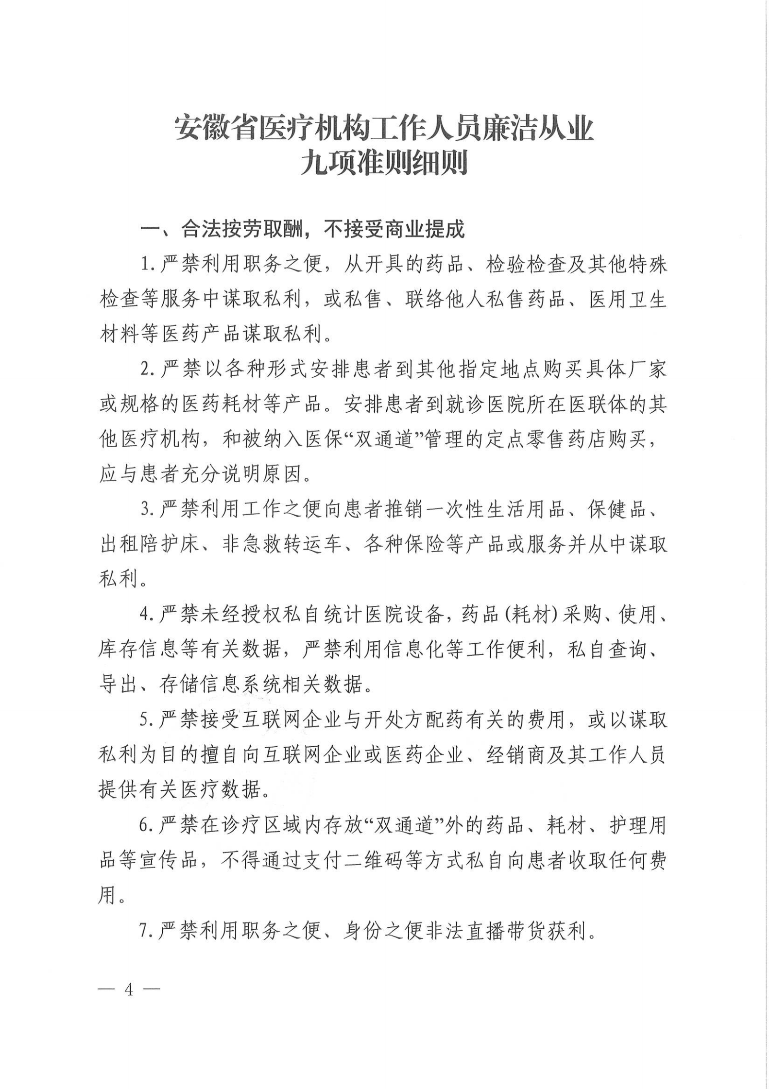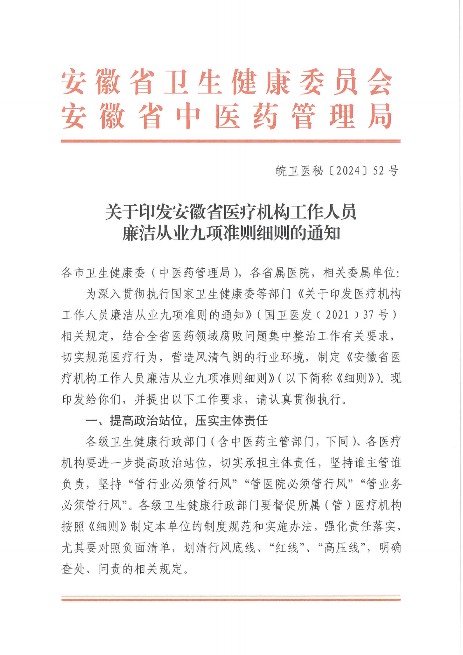 关于印发安徽省医疗机构工作人员廉洁从业九项准则细则的通知
