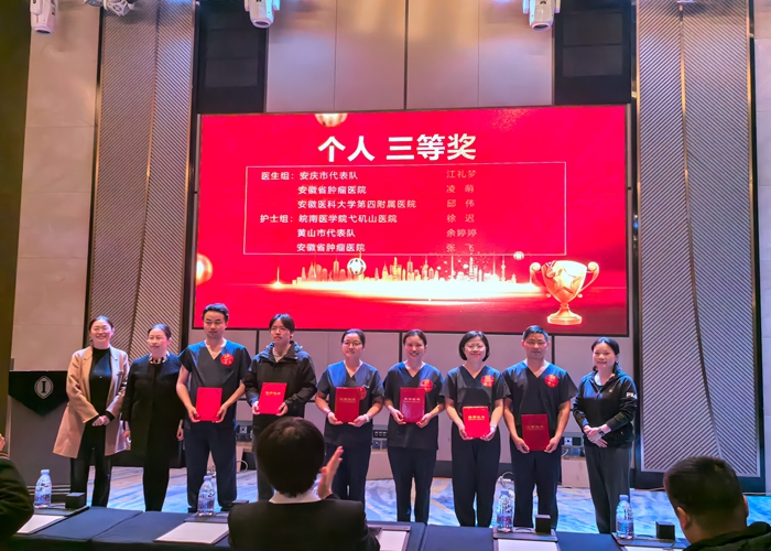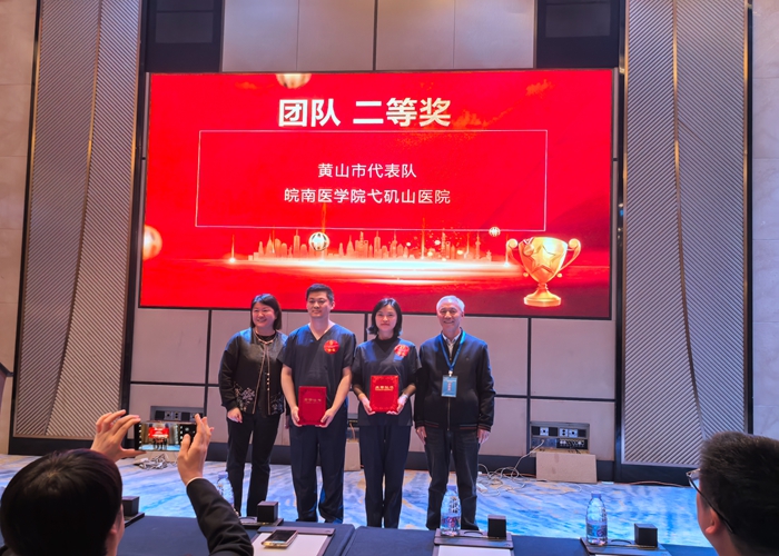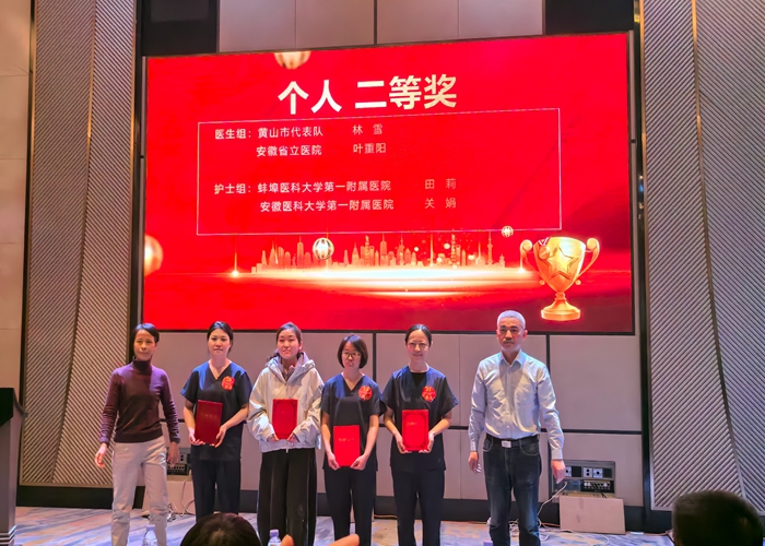 2025年11月30日,由安徽省卫生健康委员会与安徽省总工会联合主办的“2025年重症医学核心技术技能大赛”在合肥成功举办。黄山市人民医院重症医学科派出由洪曦菲副主任医师担任领队,林雪主治医师、余婷婷主管护师组成的代表队参赛。比赛中,队员们凭借扎实的理论基础、精湛的操作技能、出色的临场应变与团队协作能力,经过激烈角逐,最终荣获团体二等奖(总分第二名),并同时取得医生个人二等奖(第二名)、护理个人三等奖以及优秀指导老师奖的优异成绩,充分展现了医院重症医学专业的综合实力与医护团队的风采。