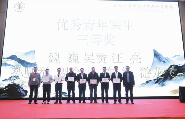 本次会议同时举办了“2025年安徽省医学会神经外科学分会优秀青年医生评选”,共有来自15家省市医院年轻选手参加比赛,通过激烈角逐,我院神经外科医师汪亮脱颖而出,获得三等奖。