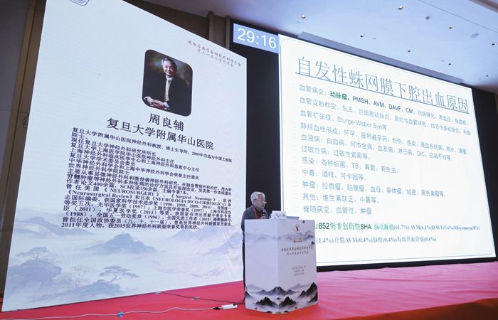 12月6日上午,周良辅院士分享了《自发性蛛网膜下腔出血的进展》,对自发性蛛网膜下腔出血的诊疗现状及最新前沿做了系统的阐述。
