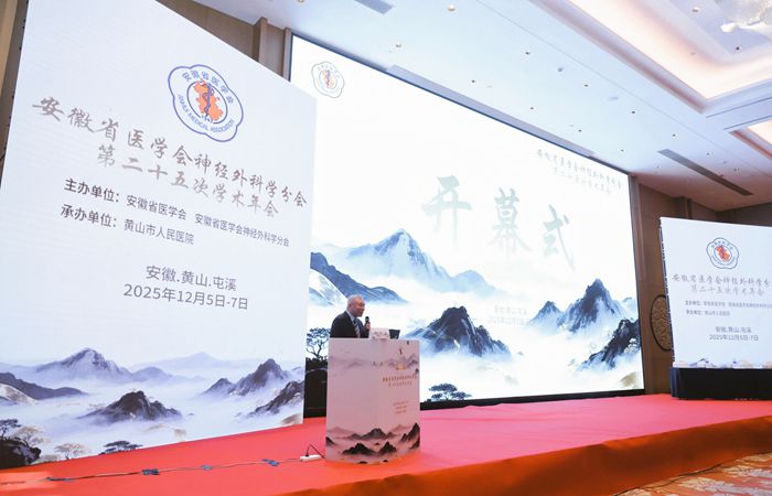 2025年12月5日-7日,由安徽省医学会和安徽省医学会神经外科分会主办,黄山市人民医院承办的“安徽省医学会神经外科学分会第二十五次学术年会”在屯溪顺利举办。本次会议邀请了中国工程院院士、复旦大学附属华山医院神经外科周良辅院士,中国科学院院士、首都医科大学附属北京天坛医院神经外科赵继宗院士,中华医学会神经外科学分会前任主任委员、首都医科大学附属北京天坛医院神经外科王硕教授,长江学者、中国科学技术大学先进技术研究院副院长(主持工作)陈勋教授,复旦大学附属华山医院神经外科胡锦教授,首都医科大学附属北京天坛医院神经外科曹勇教授,首都医科大学附属北京天坛医院神经外科贾文清教授,复旦大学附属中山医院神经外科余勇教授,上海长海医院神经外科左乔教授及省内16个地市三甲医院的专家传道授业,来自全省各地的400余名医务人员参加了培训。会议由安徽省医学会神经外科分会常务委员、黄山市人民医院神经外科主任张开鑫担任执行主席并主持开幕式。