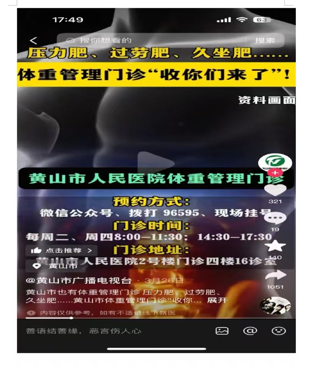 充分利用抖音等新媒体平台的传播优势,打造“体重管理年”线上宣传阵地。医院官方抖音账号定期发布体重管理科普短视频,内容涵盖科学饮食小妙招、简单有效的居家运动方法、体重管理成功案例分享等。视频以通俗易懂的语言、生动有趣的表现形式,吸引了大量粉丝关注与互动。此外,邀请医院专家进行抖音直播,在线解答网友关于体重管理的疑问,实时交流互动,进一步提升了宣传效果。有效扩大了“体重管理年”活动的社会影响力。