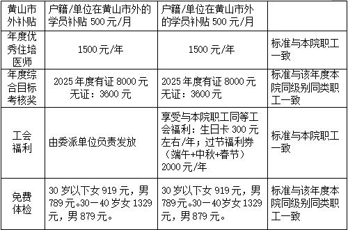 二、黄山市人民医院住院医师规范化培训医师待遇