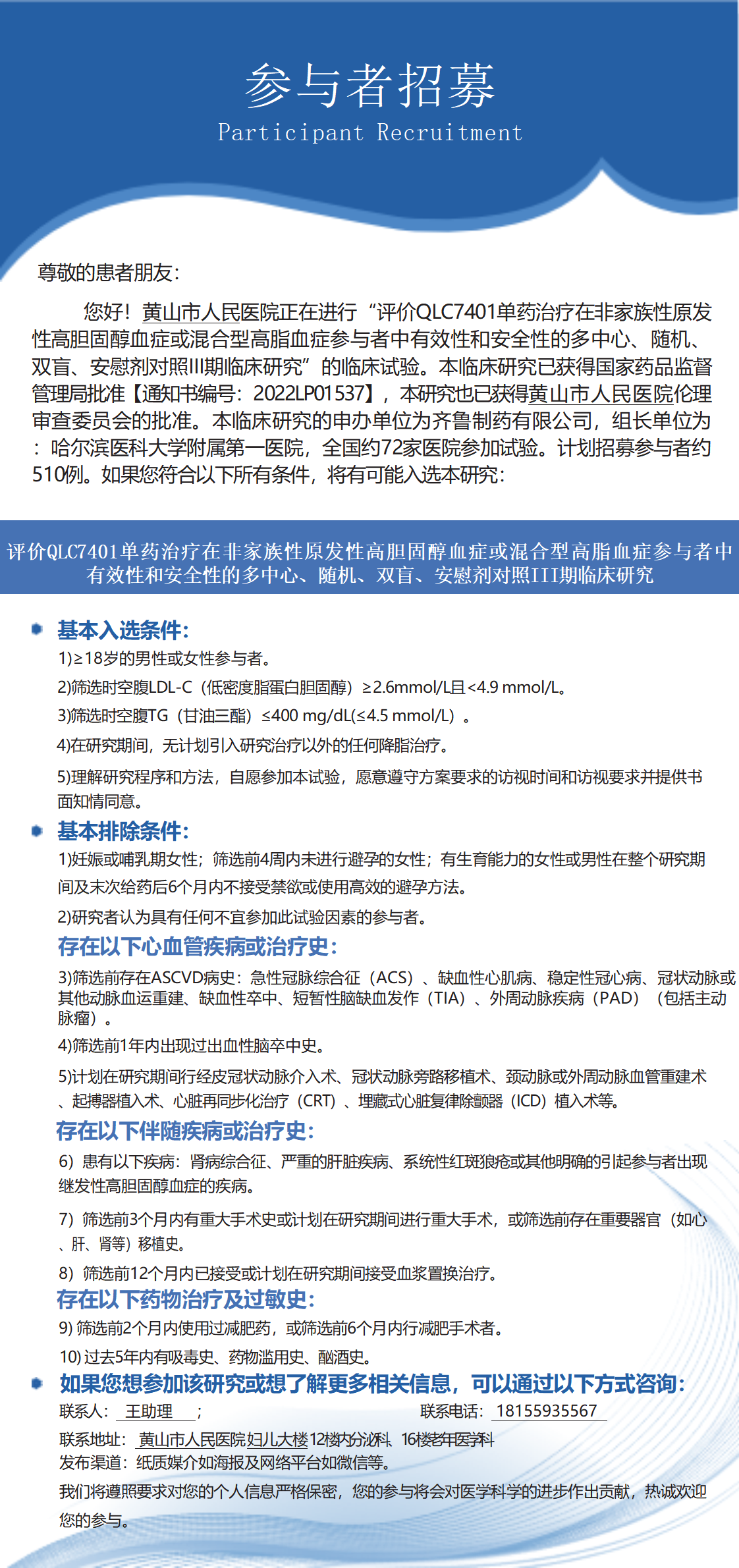 临床研究招募广告(非家族性原发性高胆固醇血症或混合型高脂血症参与者)