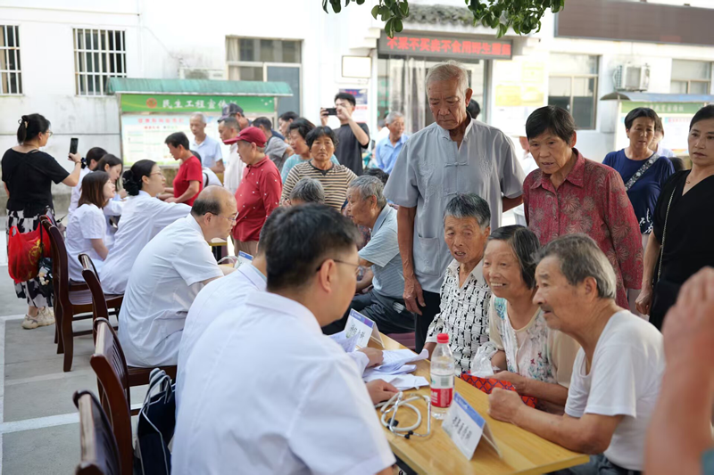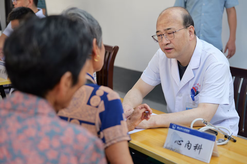清晨的万安镇卫生院内,秩序井然。院直政工党支部与门诊党支部的党员及医护专家团队,分工协作,设立泌尿外科、骨科、心内科、老年医学科、神经内科、内分泌科、中医科、皮肤科等专科诊台,为前来就诊的村民提供血压测量、血糖检测、超声检查、慢病咨询等“一站式”医疗服务。针对老年群体多、慢性病高发的特点,专家团队耐心问诊,详细解答村民关于高血压、糖尿病、骨关节疾病等常见问题,并结合季节特点普及养生保健知识。义诊专家不顾天气炎热,为百余名群众提供优质医疗服务。
