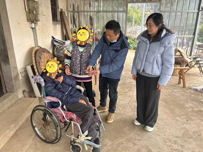 2026年1月17日上午,黄山市人民医院神经内科党支部书记、副主任医师王龙飞带领支部副书记杨燕玉副主任医师、支委主治医师韩建一行,驱车一个多小时,再次来到歙县上丰乡外西村,看望坐在轮椅上的31岁脑瘫患者王先生。